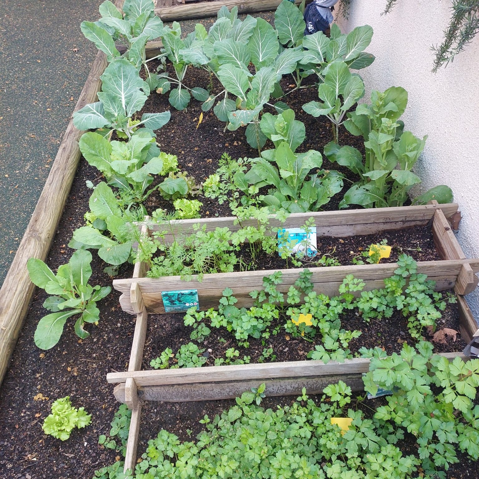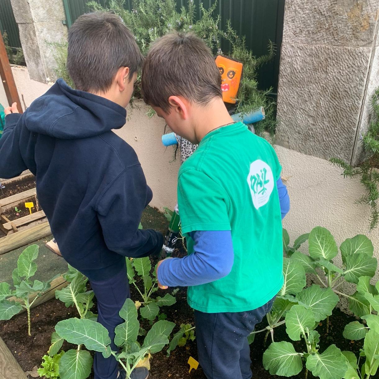 Começou em setembro com a encomenda de substrato e sementes/plantas. A partir daí plantaram, regaram, limparam, adubaram, criaram espantalhos…e chega agora a hora de colher alguns desses hortícolas (couves, nabiças, salsa, etc).