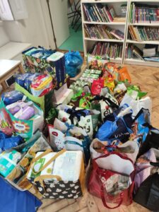 Falámos sobre o que tinha acontecido, perguntámos como poderíamos ajudar, organizámos uma recolha com as famílias, separámos materiais, carregámos a carrinha e, em articulação com a Câmara Municipal de Ourém, o nosso autocarro fez a viagem até lá com o nosso motorista.