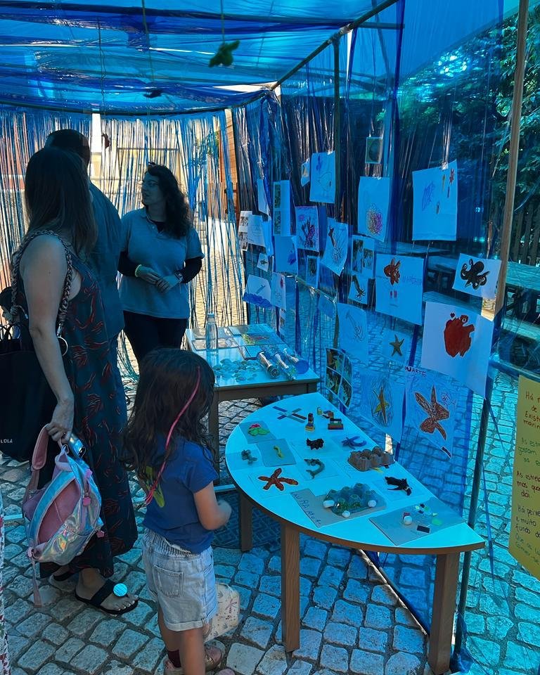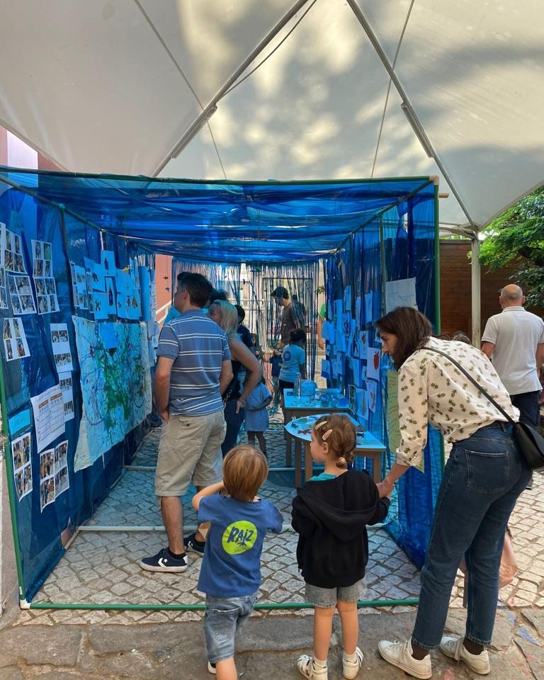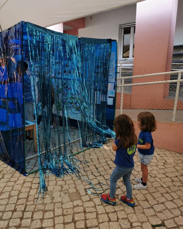 Com uma grande entreajuda entre adultos e crianças conseguimos montar o nosso aquário e expor nele um bocadinho das várias fases do nosso projeto, dando também a conhecer à comunidade escolar tudo o que fomos aprendendo.