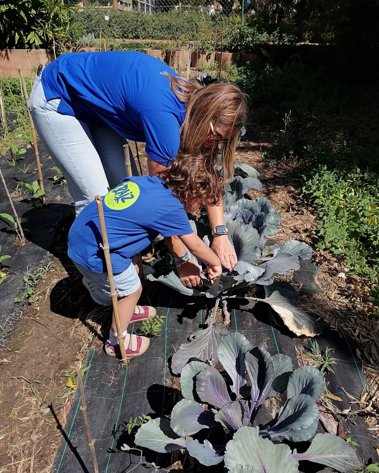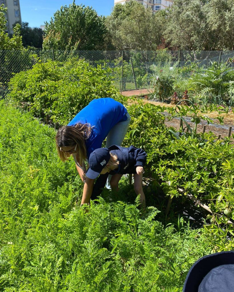 A seguir fomos à horta apanhar legumes para fazer um batido. Colhemos alface, couve roxa, cenouras, hortelã, entre outros. Na cozinha, a Céu preparou os legumes que trouxemos da horta e juntou algumas frutas do pomar para fazer o batido.